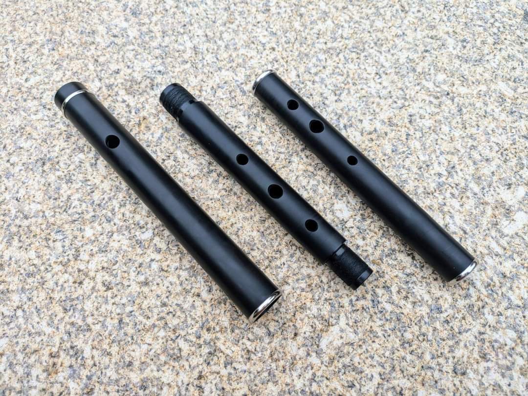 It is made in three parts. The bore is of my own design (a mixture between R&R and Pratten, with smaller lower hand holes, making it really easy to play for smaller hands). The flute is subjectively descibred by other flute players as being "Soft, Gentle, while being Loud". It's also easy blowing and very forgiving, being a good option (but not only) for Beginners.